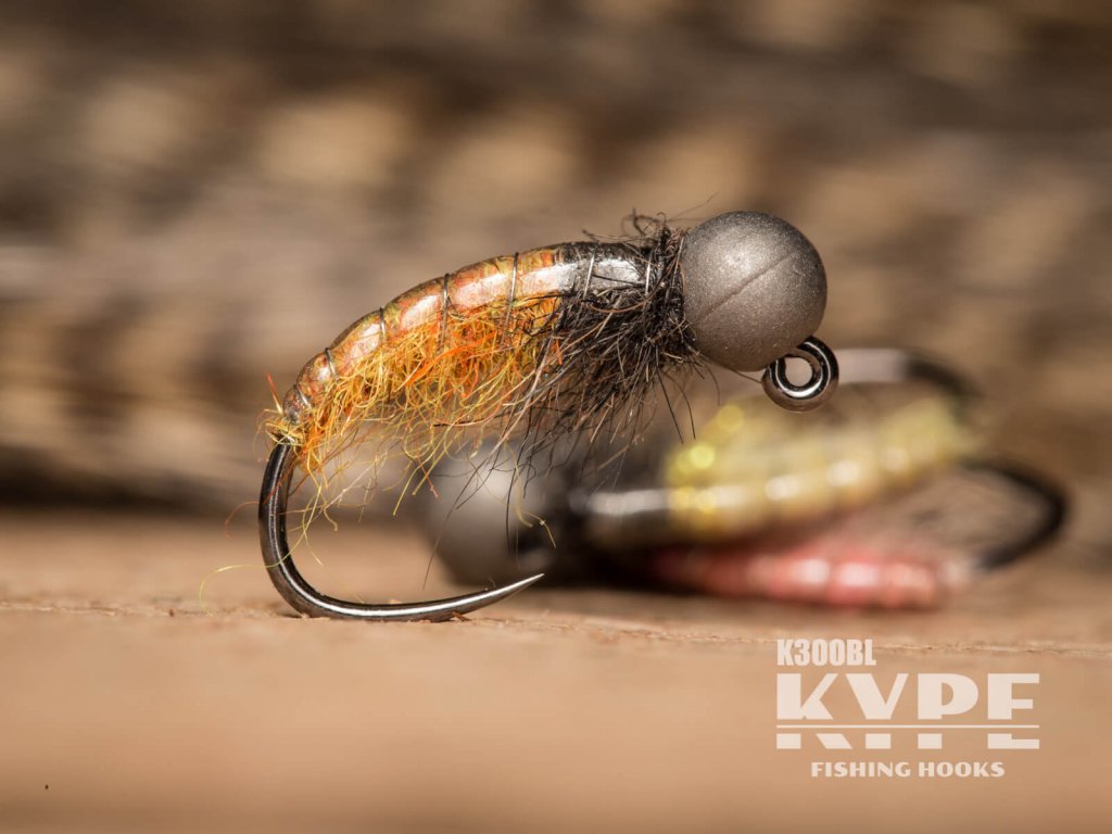 Same as Amber Black Czech Nymph but with a matt nickel tungsten bead, a truly universal fly pattern which works very well on grayling, trout and white fish as well. Weighted with lead wire. It can imitate a wide range of natural food such as mayfly / caddis nymphs, scuds and other larvae.