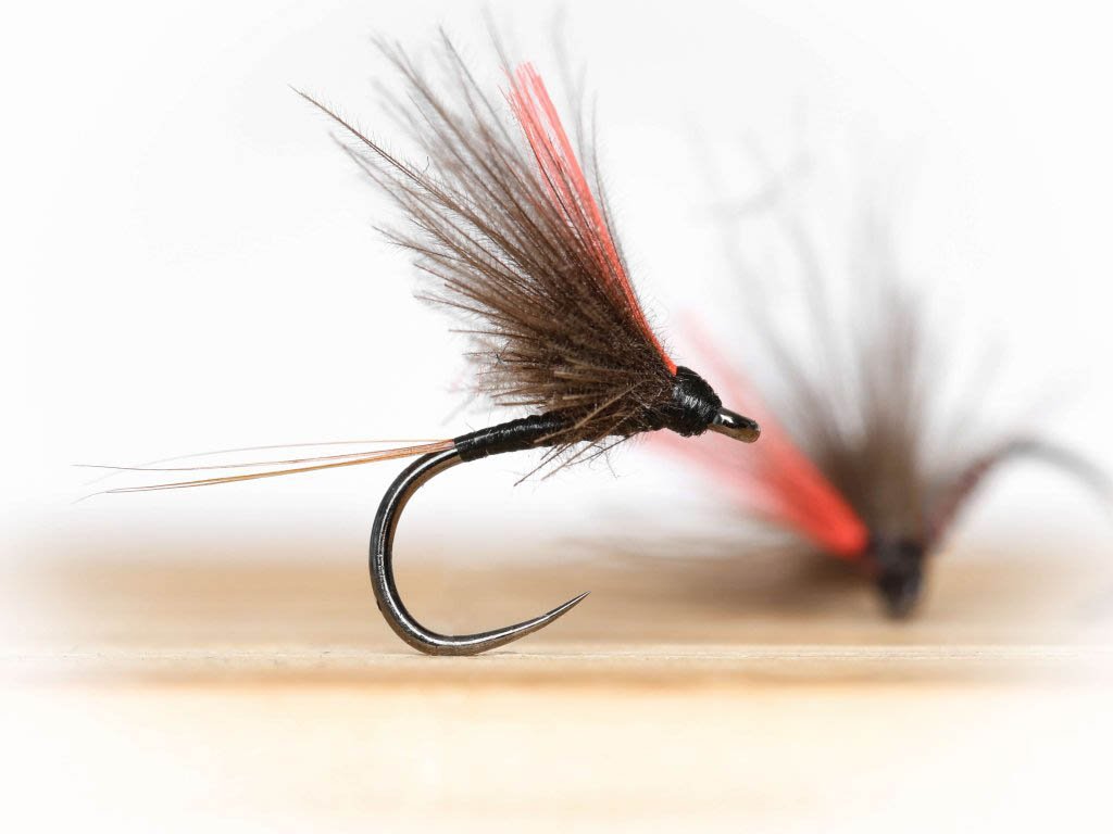 CDC Victory Dry Fly - Black Baron. One of our favourite dun dry fly pattern tied with a little bit longer V-shaped wing positioned upright, and a hot orange floss inserted between the CDC wings. It has a perfect silhouette, very appealing to the fish. We caught many nice grayling / trout on it. Give it a try!