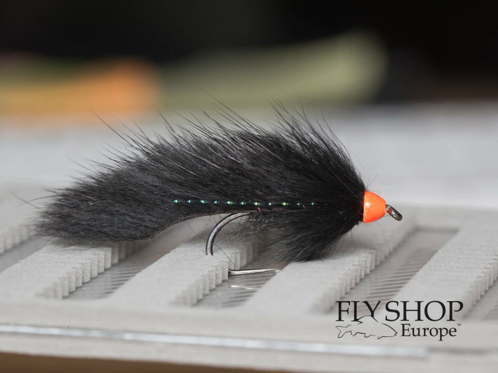 Conehead Zonker Streamer - Black Orange. Streamer fly pattern made from rabbit / muskrat zonker strip. Great pattern for chasing big brown / rainbow trout. Size 6. Weighted with a tungsten cone head. Approx. length: 5 cm / weight: 0.5 gram.
