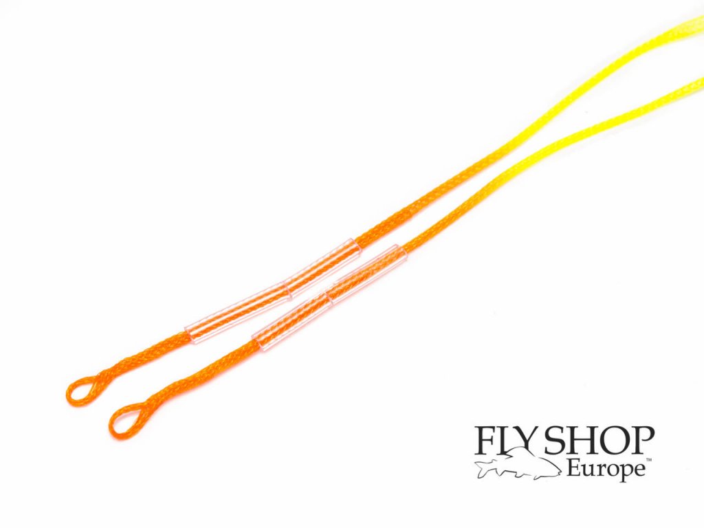 FS Europe Micro Plus Loop Connectors Fluo Yellow / Hot Orange. Micro braided loop connector for connecting fly line to leader. Including adjustment for easy insertion of the line and adjustment to avoid untangling. For lines in range 00-6 AFTM. 2 pcs per package. Bicolour, ie. fluo yellow / hot orange orange.