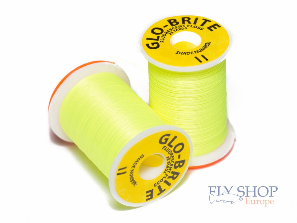 Glo Brite Floss Nr.11 Phosphor Yellow. The brightest floss on the market. It is perfect for hot spot tags, collars, and ribbing.