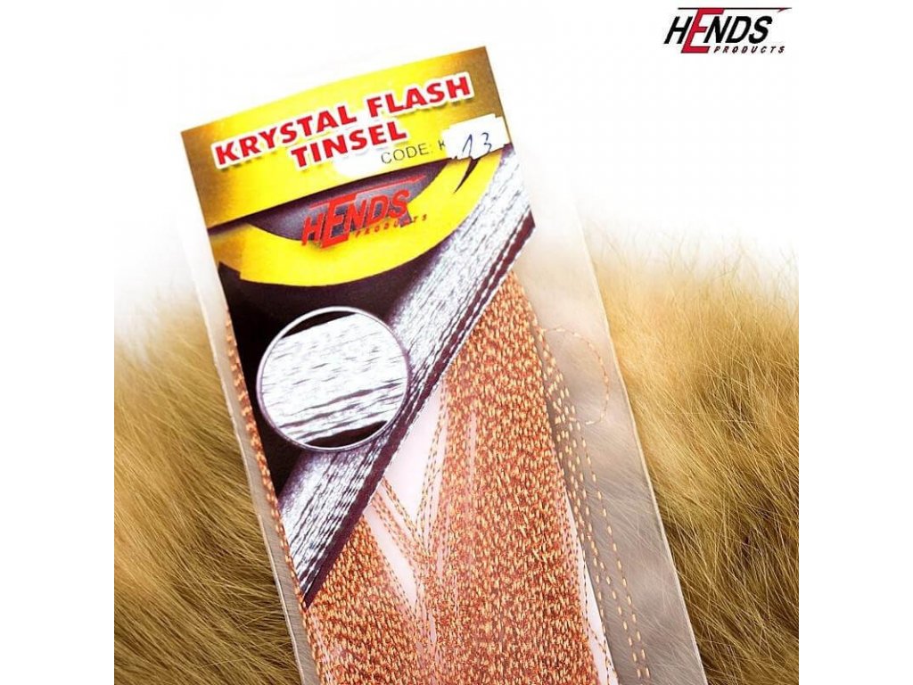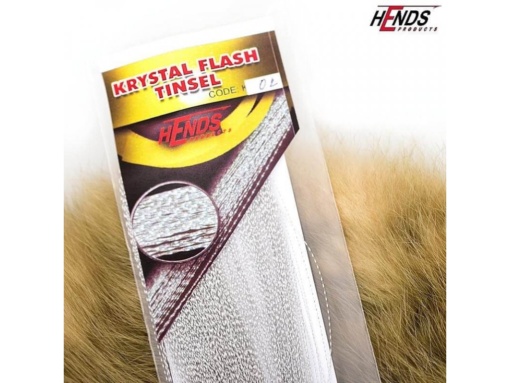 Hends Krystal Flash Tinsel is a very strong, twisted tinsel with flashy effect. Used on almost every style of flies. It's soft, very mobile and produces a pulsating action. Excellent material for wings, tails and bodies.
