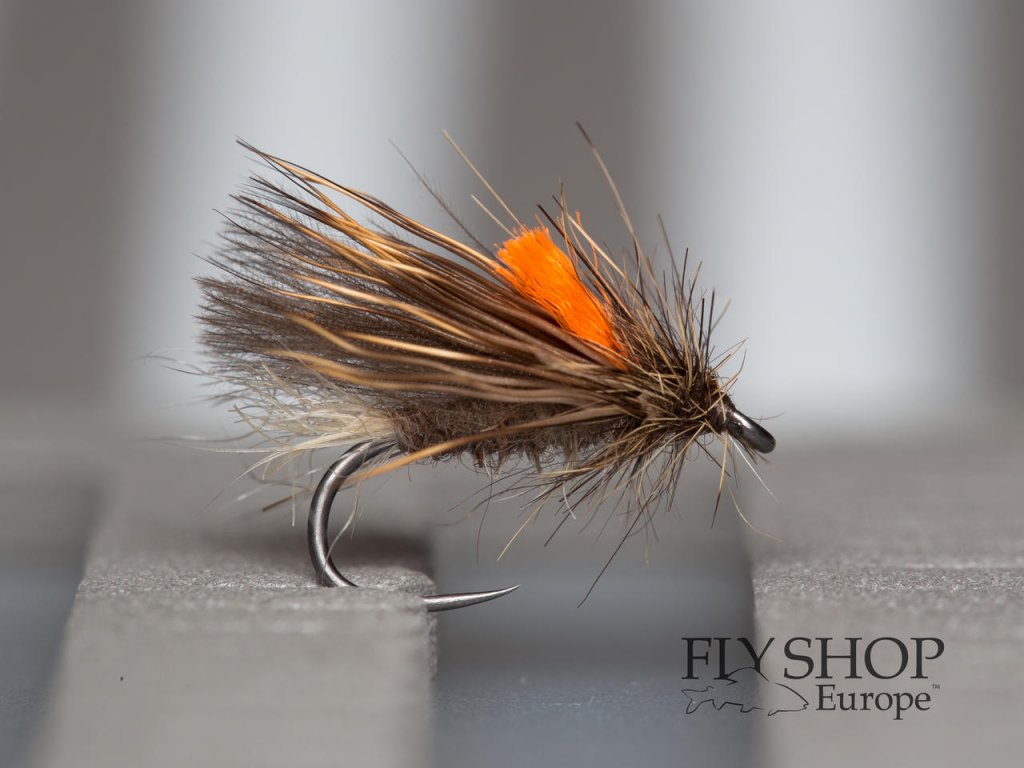 Hi Vis Deer Hair Sedge. Adult caddis dry fly pattern. Combination of CDC and deer hair will make sure the fly stays on the top. Great year round dry fly mainly for trout. Hot orange floss on the top makes the fly more visible.