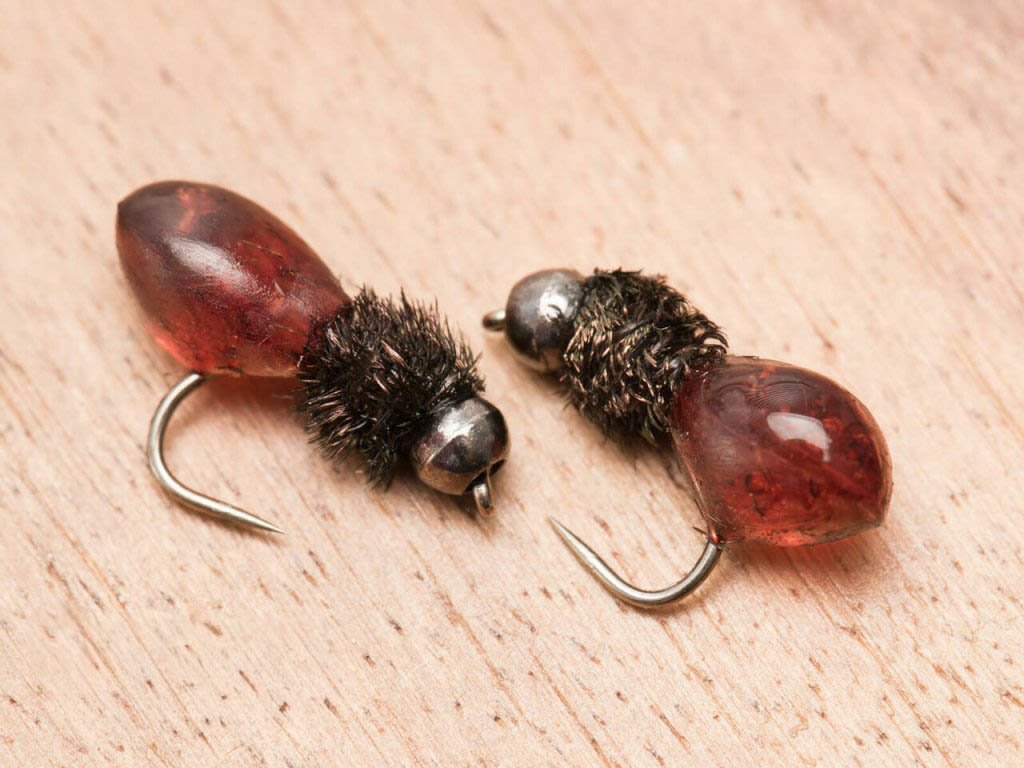 Hot Brown Snail. Simple snail fly pattern for lake trout fishing. Snails are abundant in the stillwaters and an easy target for the fish.