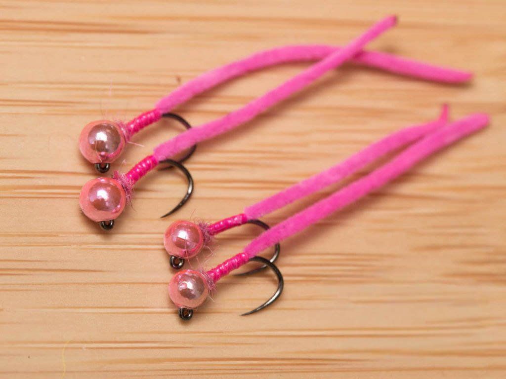 pink worm fly, hot pink chenille worm, tungsten pink worm, hot spot worm, trout nymph, squirmy wormy