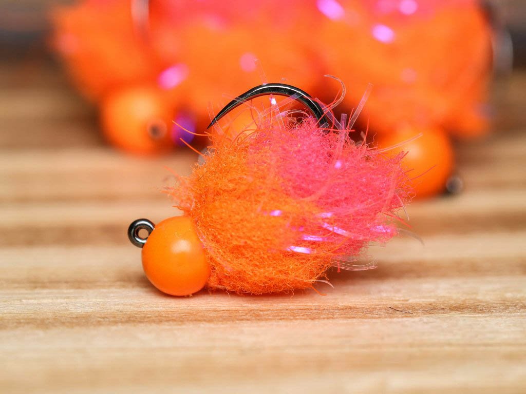 Pink Orange Electric Egg Fly. An amazing egg pattern tied with Electric Eggstasy chenille. Great attractor fly. Let it drift naturally or fish static on reservoirs. Colours come alive under the water.
