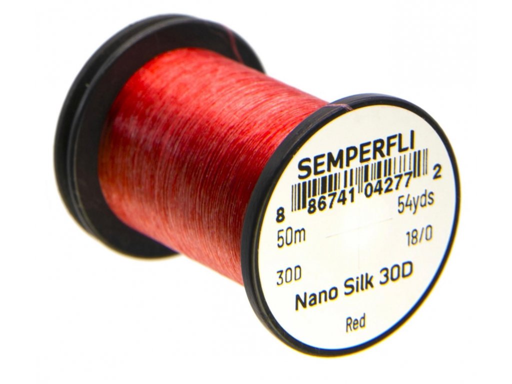 Semperfli Nano Silk Ultra 30D 18/0 Red. Nano Silk is regarded as the tying thread of choice of professional fly tyers worldwide. With Nano Silk 30D being so super strong it has endless possibilities and can be used for micro flies to medium flies. Virtually unbreakable and still capable of being split down for dubbing twists there is no fly tying thread as strong as Nano Silk anywhere.