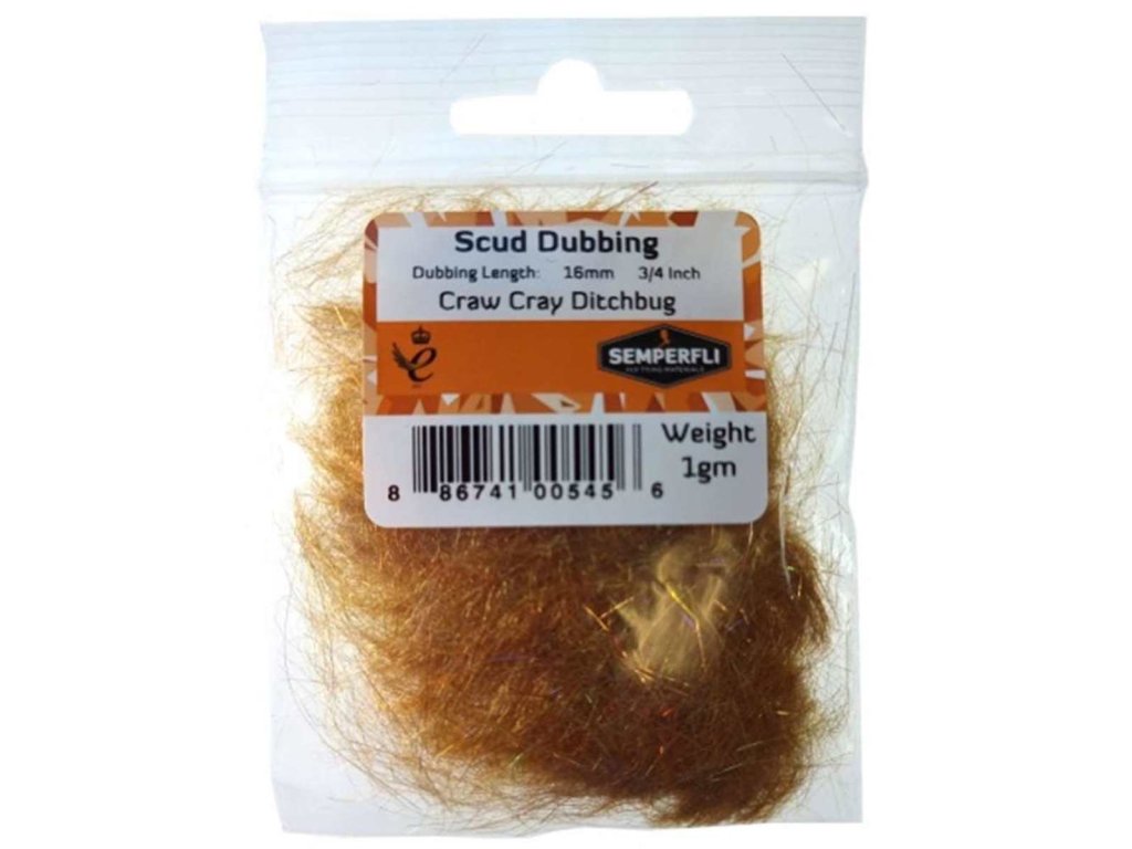 Semperfli Scud Dubbing. Scud Dubbing from Semperfli is a specialist blend of up to 5 SemperSeal colors and 6 Semperfli Ice Dubbings in 16mm or 3/4 inch staple lengths with 1gm per pack - perfect for nymphs, bugs and dry flies. It is part of the Scud Dubbing range. With the translucent SemperSeal and vibrant flashes from Semperfli Ice Dubbing embedded in this unique dubbing, Scud dubbing sets new standards for color and effect in fly tying.