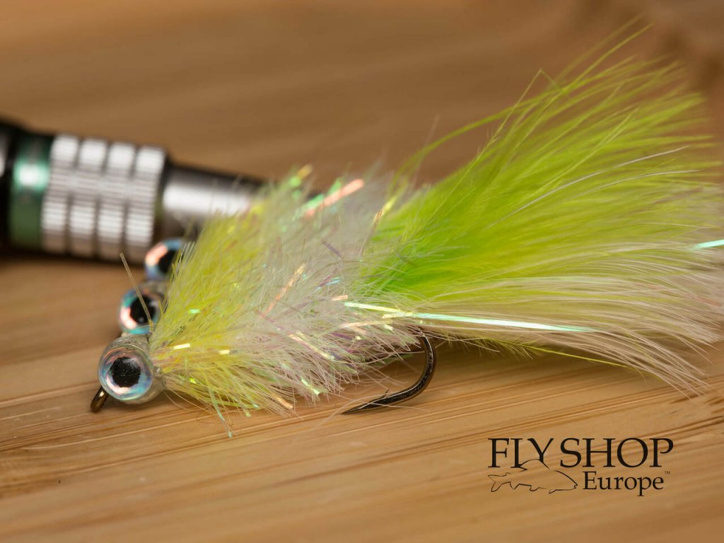 Strímer Crystal Chartreuse White Wooly Bugger Streamer BARBED