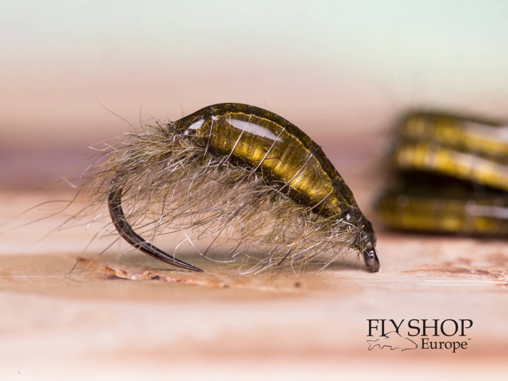 Slim Tungsten Body Scud - Olive. NEW for 2023, tungsten slim scuds tied with our exclusive tungsten bodies, which is the best way to increase the weight of such fly and at the same time achieve a nice slim realistic profile of the fly. In comparison with the lead scud bodies it is approx. 1.7x denser / heavier and non-toxic. Fantastic fly pattern for tricky grayling and trout. When classic tungsten jig nymphs are not working, this is the way to go.