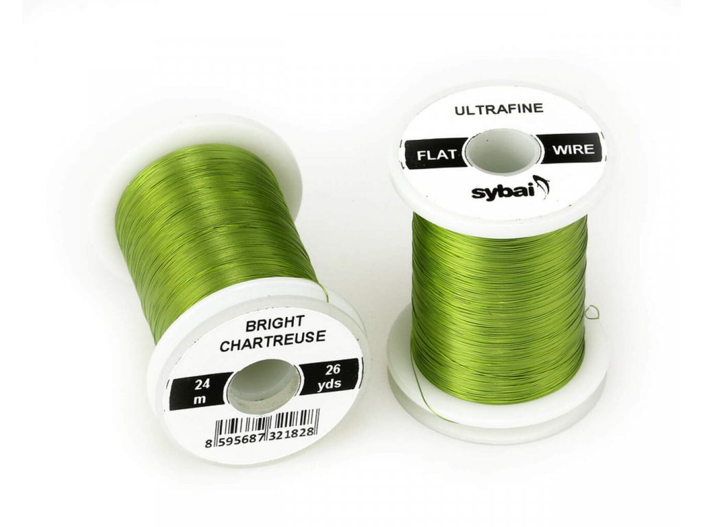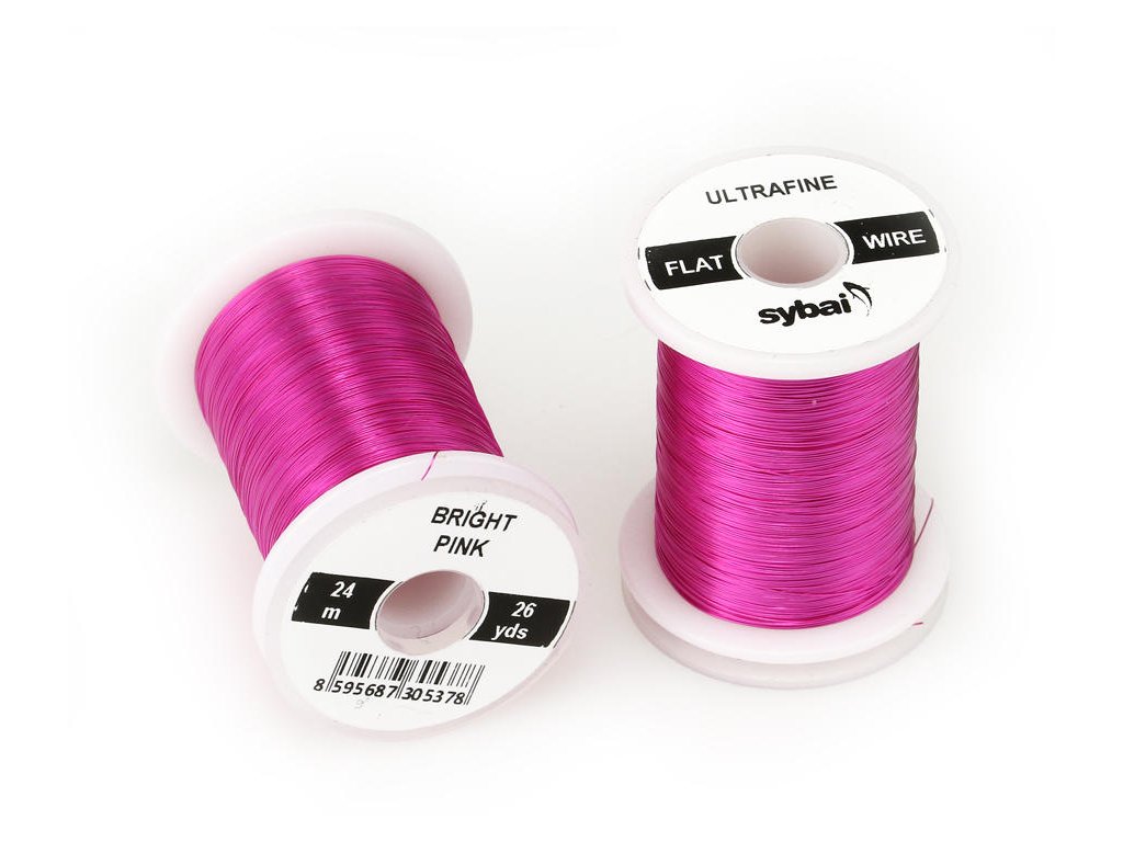Sybai Flat Colour Wire - Ultrafine. We are pleased to exclusively introduce to you the “Flat Color Wire”. This exceptional product enables a whole new range of fly tying possibilities. The main advantage over a conventional round wire is the surface with very effective reflection and also a little more strength. When used in ringing on the body it cuts less into dubbing, which is enhancing the ribbing effect even more. Flat wire therefore combines the effect of the tinsel and the strength of the wire! We offer a total of 6 variations, each in many colours - so it can be used for tying of all types of flies from micronymphs to really big streamers or salmon and sea flies.