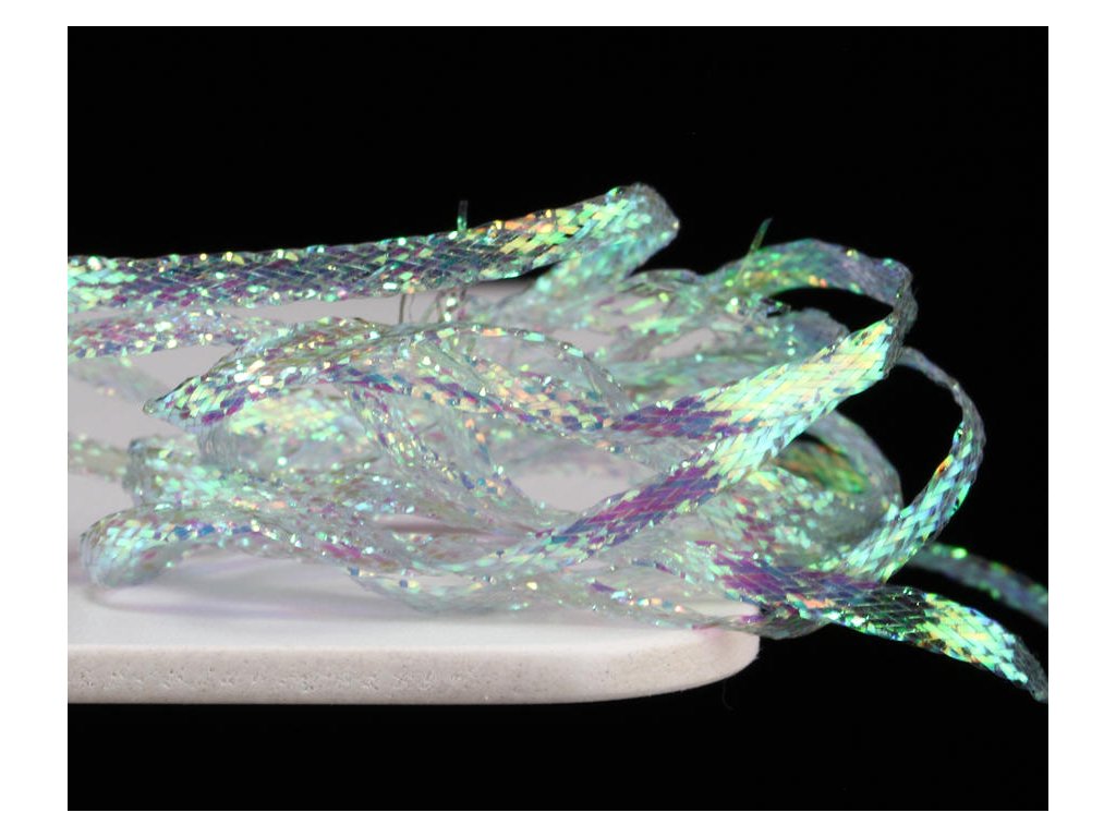 Sybai Pearl Braidback 2.5mm. Pearlescent braid material for scuds, shrimp and midges also can be used to build wing cases and streamer body. Width 2.5mm.