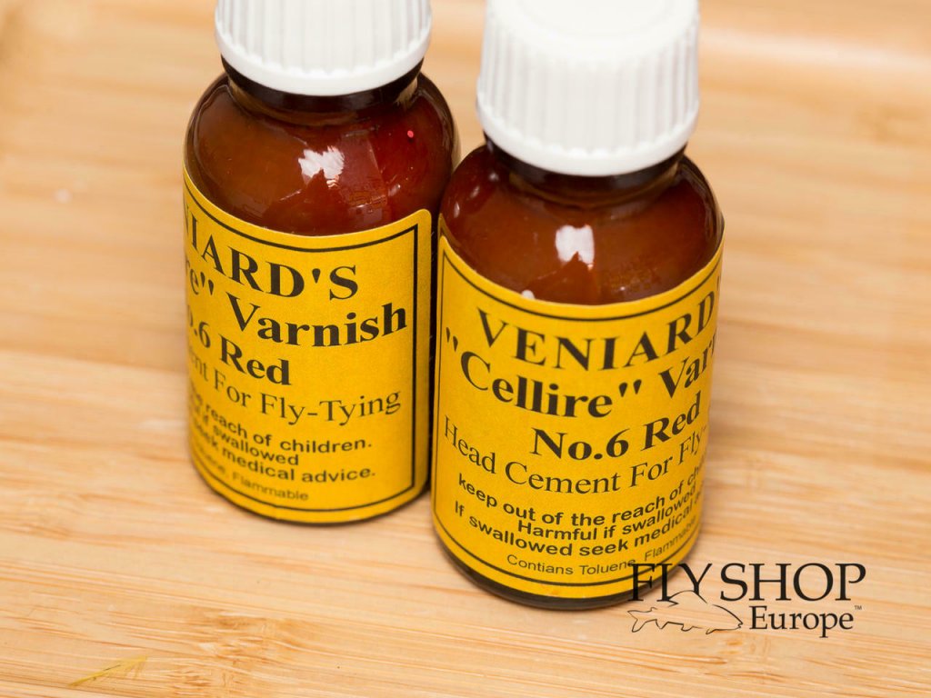 Veniard Cellire Varnish - Coloured. The original and best head cement. Black colour. To apply, use a small amount of varnish onto fly heads for a thin accurate application. For the best application use a dubbing needle. 15ml Bottle.