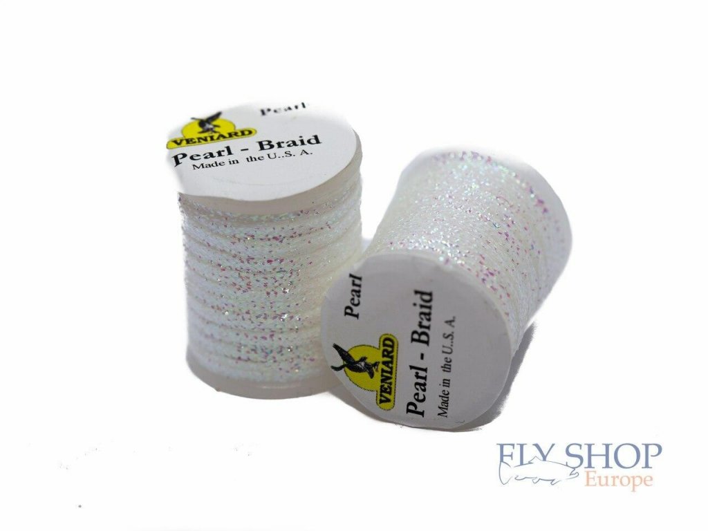 Pearl Flat Braid from Veniard. Great for bodies and cheeks on trout and salmon patterns. Often used for cheeks on buzzer patterns. Available in various colours.