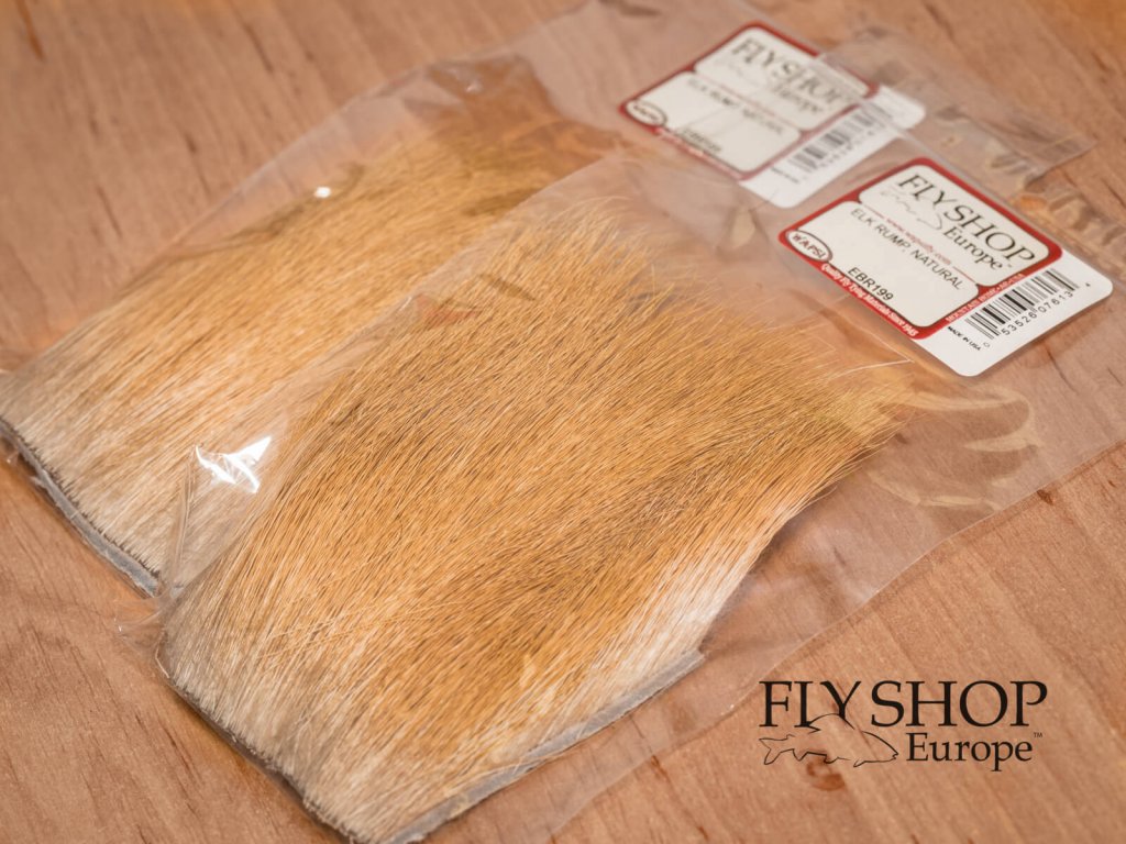Wapsi Elk Rump Natural Hair. Elk Rump has the longest length and largest diameter hair, and is perfect for hopper bodies. Elk rump hair is a natural material used for fly tying. It comes from the rump or hindquarters of an elk, and is often used to imitate the legs, wings, or tails of insects that fish feed on. Elk rump hair is typically long, durable, and buoyant, with tapered tips that create a natural-looking texture when tied onto a fly. It can range in color from light tan to dark brown, and may have variations in texture and length depending on the individual elk and the season in which the hair was collected.