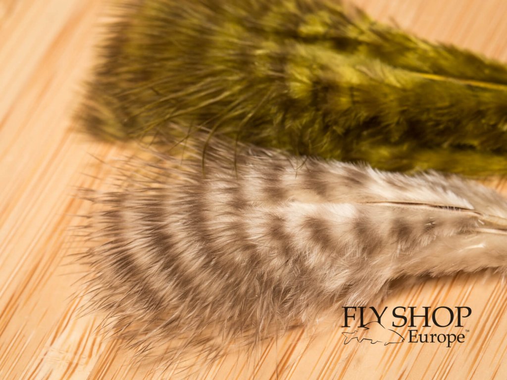The natural barring of the grizzly marabou looks great on wooly buggers and smaller flies. It comes from chickens & is also known as grizzly chickabou. Approx. 100 feathers per package. Each feather measures approx. 7 - 10 cm.